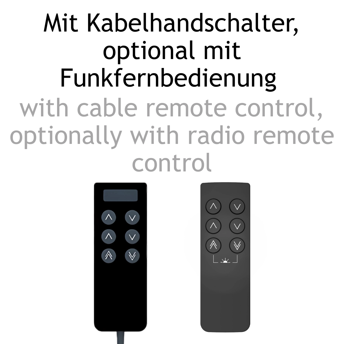 2-motorig, Kabelfernbedienung: Oberschenkel- und Rückenverstellung; manuell: Kopfverstellung 5-stufig